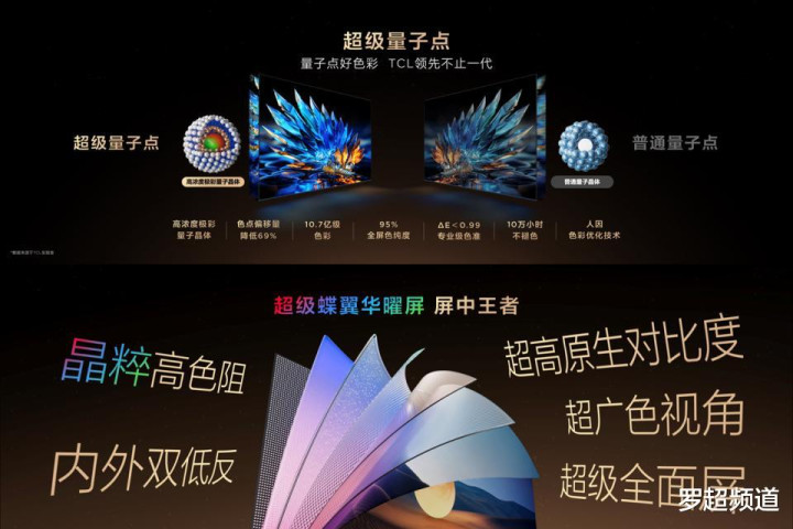 然而,纵观电视技术近十年发展路径,对比度发展迅速,TCL通过万象分区,将控光技术做到了顶尖级,以“一区顶多区”的实力傲视行业;色域在2014年量子点技术把色域水平拉到了当时的巅峰后,却停滞了整整十年。即使现在的RGB-Mini LED厂商号称做到了100%BT.2020水平,也仅仅局限在单色场景的表现,无法满足日常的复杂观影场景。